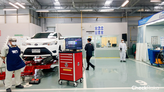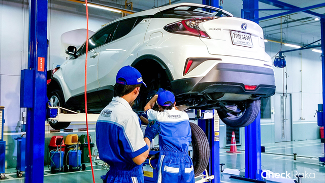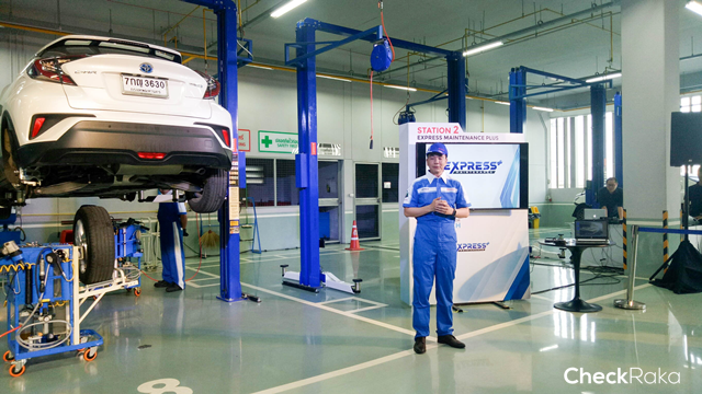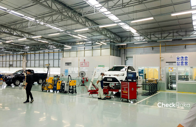 - การบริการเช็กระยะและงานซ่อมโดยผู้เชี่ยวชาญที่ผ่านการรับรองมาตรฐานการปฏิบัติงานจาก บริษัท โตโยต้า มอเตอร์ ประเทศไทย จำนวน 3 คน ต่อ 1 ช่องเช็กระยะ (Express Maintenance) ทำให้สามารถลดระยะเวลาการปฏิบัติงาน แต่ยังคงไว้ด้วยคุณภาพและมาตรฐานการทำงานขั้นสูง