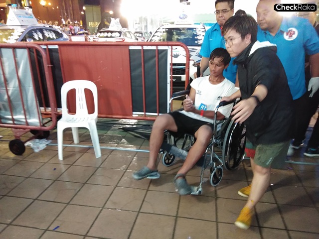 แต่เรื่องไม่คาดคิดก็เกิดขึ้นอีกครั้งกับทีมไทย มร. เกลน ตัน ประธานเจ้าหน้าที่บริหาร บริษัท ตันจง อินเตอร์เนชั่นแนล จำกัด พร้อมทีมกรรมการเดินตรวจสอบทั้ง 2 ทีมว่าจะมีใครที่มือแตะไม่ตรงกติกาหรือไม่ ไม่นานนักทุกอย่างทั้งบนเวที รถเข็นแพทย์ ก็ถูกเตรียมพร้อม เสมือนถึงเวลาต้องจบงานแข่งคร้งนี้แล้ว แม้ทีมสิงคโปร์ที่มือยังคงแตะได้เหนียวแน่น แต่ก็มีอาการ "ยืนไม่ไหว" ส่วนของไทยที่นิ่งมาก มีเพียงมือที่สั่นจากอาการหนาว สุดท้ายฝ่ายไทยจึงถูกกรรมการเตือนว่า "มือขยับไม่แนบกับตัวสติ๊กเกอร์บนรถ" ทั้งที่คุณ "ต้าร์" ใช้มืออีกข้างกดอย่างแนบสนิทเท่าที่ทำได้แล้วก็ตาม จึงถูกกรรมการเชิญตัวออกไปและสุดท้ายฝ่ายเจ้าภาพสิงคโปร์ชนะไปแบบฉิวเฉียด ด้วยความแปลกใจในสายตาผู้เข้าร่วมชม และสื่อมวลชนของไทยที่เข้าร่วมทำข่าวสังเกตุการณ์ในครั้งนี้