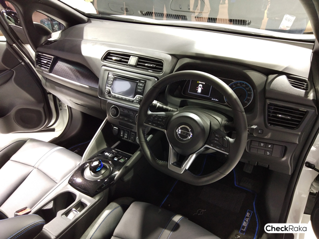 Nissan LEAF ใหม่ ถูกออกแบบภายในมาให้หรูหราแต่แฝงด้วยความเรียบง่าย ผ่อนคลาย และทันสมัย มีความกว้างขวาง และสะดวกสบายมากขึ้น ที่ยึดหลักการออกแบบของนิสสัน Gliding Wing เป็นแนวทางหลัก การใช้ตะเข็บสีฟ้าเป็นสัญลักษณ์ของรถยนต์ไฟฟ้านิสสัน ทั้งบริเวณเบาะนั่ง ด้านข้างประตู ที่วางแขน และพวงมาลัย รวมทั้งการใช้โทนสีน้ำเงินกับปุ่มสตาร์ต และเกียร์ที่ให้ความรู้สึกถึงเทคโนโลยีล้ำสมัย