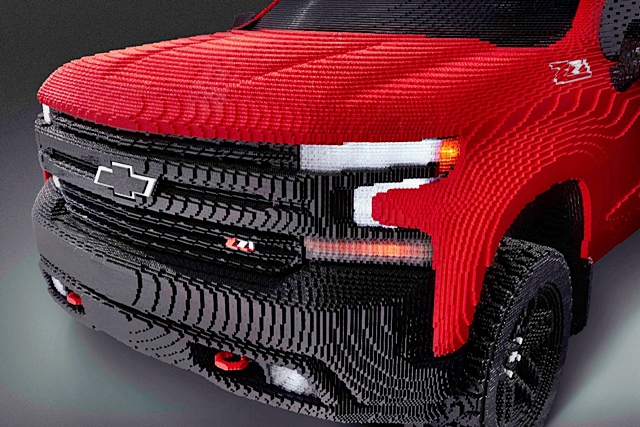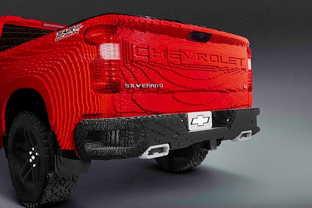 นักต่อเลโก้ที่ได้รับการฝึกฝนเป็นพิเศษทั้ง 18 คน ใช้เวลาสร้างสรรค์ผลงานชิ้นนี้มากกว่า 2,000 ชั่วโมงในการคัดเลือกตัวต่อด้วยมือและนำตัวต่อเลโก้ทั้งหมด 334,544 ชิ้น มาประกอบเป็นรถกระบะเชฟโรเลต ซิลเวอร์ราโดจากตัวต่อเลโก้ สีแดง ที่มีรายละเอียดของแสงและข้อมูลกราฟฟิคบนรถ