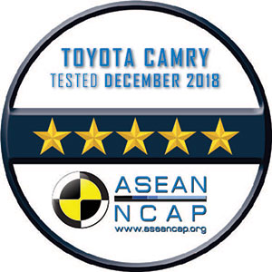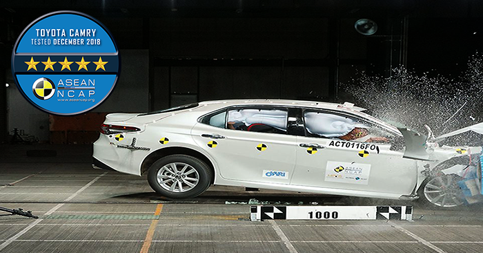 รถยนต์โตโยต้า สร้างมาตรฐานความเหนือระดับความปลอดภัยอีกขั้นกับ All-New Camry 2019 รถยนต์ซีดานขนาดกลางสุดหรูรุ่นล่าสุด ได้รับการรับรองมาตรฐานความปลอดภัยระดับ 5 ดาว จากการทดสอบการชนรถใหม่ในอาเซียน หรืออาเซียน เอ็นแคป (ASEAN NCAP) ตามหลักเกณฑ์การประเมินผลแบบใหม่สำหรับปี พ.ศ. 2560 - 2563 เมื่อวันที่ 12 กุมภาพันธ์ 2562