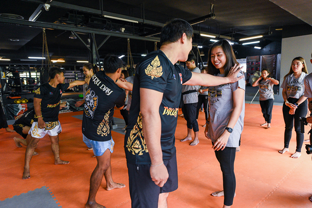 หลังจากที่เราเดินทางมาถึงในส่วนของกิจกรรมแรกกับการสอนเทคนิคฝึกอบรมศิลปะป้องกันตัวพื้นฐานที่เลเจนด์ ไทย บ็อกซิ่ง พร้อมทักษะการป้องกันตัวจากผู้ร้ายที่จะเข้ามาลวนลาม ได้ความรู้ และเสียเหงื่อกับการออกกำลังกาย สร้างความปลอดภัย และร่างกายแข็งแรงอีกด้วย