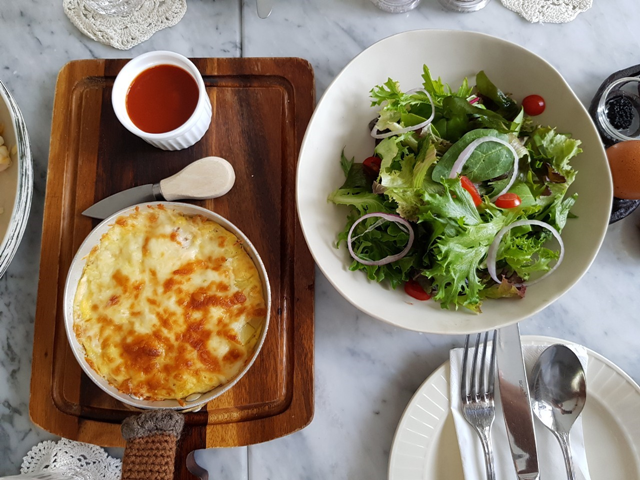 หลังจากเสร็จสิ้นกิจกรรมเรียกเหงื่อ ก็ได้เวลารับประทานอาหารกลางวัน เราตรงดิ่งไปที่ร้านอาหารซูเฟล แอนด์ มี (Souffle & Me) ของเชฟไก่ ธนัญญา ไข่แก้ว เชฟกระทะเหล็กหญิงคนแรกและคนเดียวในการแข่งขันรายการเชฟกระทะเหล็กประเทศไทย ซึ่งก็มีทั้งคาวแบบไทย หรือจะไปแบบอิตาเลียน ที่สำคัญขนมหวานของที่นี่ห้ามพลาด! (อร่อยทุกอย่างไม่ได้โม้นะคะ)