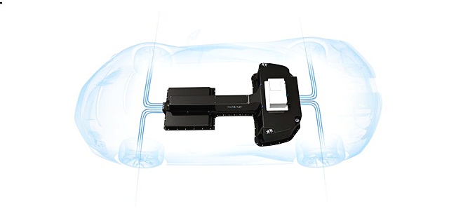 นอกจากนี้การจัดวางของแบตเตอรี่ลิเธียม/แมงกานีส/นิกเกิล 6,960 เซลล์ 120 กิโลวัตต์-ชั่วโมง ในรูปแบบตัว "T" บนตัวถัว carbonfibre monocoque ระดับต่ำสุดพร้อมการกระจายน้ำหนักได้บาลานซ์มากที่สุด โดยมีชุดขับเคลื่อนแบบ Single-speed ที่ล้อคู่หน้าและแบบ Two-speed ที่ล้อคู่หลัง พร้อมระบบ R-AWTV กระจายกำลังสู่ 4 ล้อได้อย่างเหมาะสม สามารถวิ่งได้ระยะทาง 450 - 550 กิโลเมตร ต่อการชาร์จ 1 ครั้ง และไม่ลืมที่จะเพิ่มความเร้าใจแม้จะเป็นมอเตอร์ไฟฟ้าที่แสนเงียบ จึงติดตั้งชุดกำเนิดเสียงดุดันที่เลือกได้ถึง 5 รูปแบบ