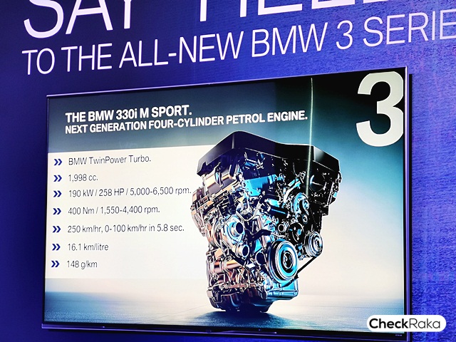 มาต่อกันที่บีเอ็มดับเบิลยู 330i M Sport เครื่องยนต์เบนซิน 4 สูบ กำลังสูงสุด 190 กิโลวัตต์ / 258 แรงม้าที่ 5,000 - 6,500 รอบต่อนาที และแรงบิดสูงสุด 400 นิวตันเมตรที่ 1,550 - 4,400 รอบต่อนาที อัตราเร่ง 0-100 กิโลเมตรต่อชั่วโมง ใน 5.8 วินาที ความเร็วสูงสุด 250 กิโลเมตรต่อชั่วโมง และมี Driving Experience Control ที่มีรูปแบบการขับขี่ให้เลือกทั้งในโหมด COMFORT, SPORT และ ECO PRO