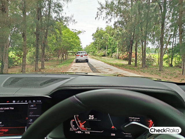 การขับบนถนนของ X5 ยังให้ความนุ่ม เงียบและไม่โยนตัวเมื่อเค้าทางโค้ง เกาะถนนได้ดี พร้อมอัตราเร่งที่ไกล้เคียง 330i เลยทีเดียว แต่ด้วยสภาพถนนที่ไม่สมบูรณ์นั้น ขับ X5 มั่นใจกว่าและยัง "รูด" ถนนพังๆ ได้อย่างนุ่มนวล