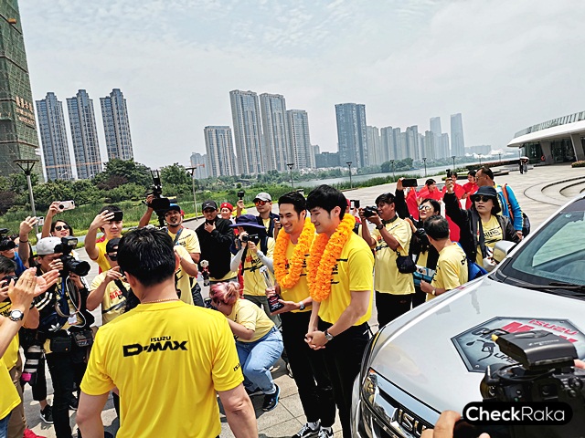 บรรยากาศการต้อนรับจากทีมงานอีซูซุและสื่อมวลชนไทยที่ร่วมเดินทางไปเชียร์