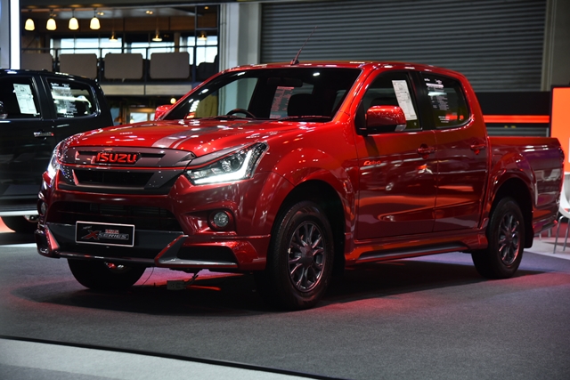 รถอีซูซุที่นำมาจัดแสดงภายในงาน เน้นรูปแบบการตกแต่งภายใต้ความล้ำสมัยโดดเด่นในโทนดำ-แดง เท่ ดุดัน ผสานกับความหรูหราอย่างลงตัวในงาน FAST Auto Show Thailand 2019 ประกอบด้วย