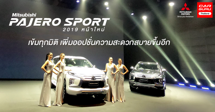 Mitsubishi Pajero Sport 2019 ใหม่รถยนต์อเนกประสงค์ 7 ที่นั่ง ปรับโฉมส่วนหน้าด้วยกันชนทรงใหม่รูปแบบเดียวกับใน "ไทรทัน" และ "เอ็กซ์แพนเดอร์" กระจังหน้าใหม่ ฝากระโปรงดีไซน์เพิ่มมิติความลึกมาขึ้น มาพร้อมหน้าจอแสดงผลข้อมูลแบบ LCD ขนาด 8 นิ้ว เลือกการแสดงผลได้ 3 รูปแบบ ครั้งแรกในรถยนต์ระดับเดียวกัน เพิ่มความสะดวกสบายด้วยประตูท้ายไฟฟ้า และระบบความปลอดภัยเต็มคัน