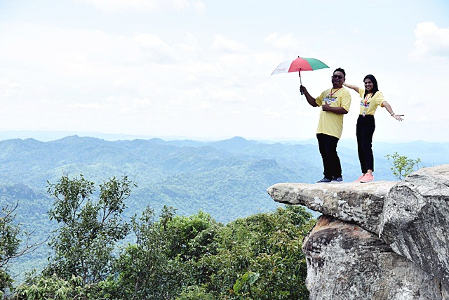 ช่วงบ่ายหลังขบวนหยุดแวะรับประทานอาหารกลางวัน ณ ร้านเก๋ปลาทอด อ.ชัยบาดาล จ.ลพบุรี ก็พร้อมออกเดินทางปักหมุดจุดหมายท่องเที่ยวแห่งที่สอง ณ "อุทยานป่าหินงาม" จ.ชัยภูมิ ชมความงามของ "ทุ่งดอกกระเจียว" หรือ ดอกบัวสวรรค์ พรรณไม้ที่เกิดขึ้นเองตามธรรมชาติ ออกดอกเพียงปีละครั้งในช่วงต้นฤดูฝนประมาณกลางเดือนพฤษภาคม - สิงหาคมของทุกปี และอีกหนึ่งไฮไลท์ที่ห้ามพลาดคือการวัดความกล้าท้าความเสียวที่สูงเสียดฟ้าของ "ผาสุดแผ่นดิน" จุดสูงสุดของอุทยานแห่งชาติป่าหินงาม และยังเป็นหน้าผาที่สูงที่สุดในชายขอบด้านตะวันตกของที่ราบสูงโคราชที่มีความสูงถึง 846 เมตร อีกด้วย