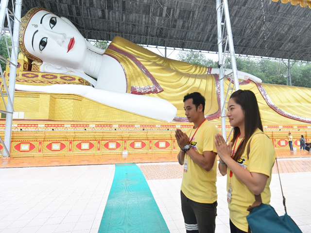 จากนั้นจึงเดินทางไปรับประทานอาหารค่ำ ณ ร้าน Bamboo Garden อิ่มอร่อยกับอาหารทะเล กุ้งล็อบสเตอร์ตัวโตจากทะเลทวาย สร้างความประทับใจให้กับผู้ร่วมคาราวานเป็นอย่างยิ่ง อีกสถานที่ที่พลาดไม่ได้เลย "วัดชเวตองซา" ร่วมสักการะพระเจดีย์ชเวตองซา (Shwe Taung Sar Zedi) วัดสำคัญของเมืองทวาย มีองค์พระเจดีย์ที่ใหญ่และสูงที่สุดในเมืองทวาย จำลองมาจากเจดีย์ชเวดากอง เมืองย่างกุ้ง ภายในพระวิหารประดิษฐานพระพุทธรูปโลกะมารชินปางมารวิชัย อายุ 140กว่าปี วัดแห่งนี้ก่อสร้างเมื่อปี พ.ศ. 2304 มีอายุมากกว่า 250 ปี มีพิพิธภัณฑ์แสดงวัตถุโบราณต่างๆ มากมาย อาทิ ปืนใหญ่สมัยกรุงศรีอยุธยา พระพุทธรูปสำริดศิลปะแบบไทย และดาบสมัยโบราณ ชาวทวายนิยมมาไหว้พระขอพรยามค่ำคืน จบทริปแบบอิ่มบุญ อิ่มใจกันถ้วนหน้า ปิดท้ายด้วย "วัดชินดะเวย" (Shin Dat Wae Pagoda) อีก 1 ใน 9 วัดศักดิ์สิทธิ์ที่ชาวเมียนมาร์เลื่อมใส วัดแห่งนี้เป็นวัดที่มีขนาดใหญ่และสวยงามที่สุดของเมืองทวาย มีประวัติยาวนานกว่าพันปี นับเป็นการปิดท้ายทริปได้อย่างประทับใจ