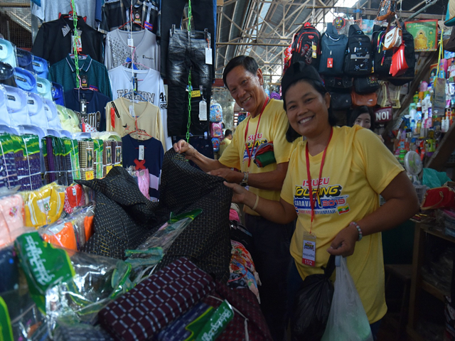 จุดหมายต่อมาคือการหาซื้อของฝากจากเมืองทวาย ที่ตลาด Mingalar หรือตลาด 100 ปี ซึ่งตลาดนี้จะมีสินค้าหลากหลายให้เลือกซื้อ ไม่ว่าจะเป็นผงทานาคาสำหรับประทินผิวของสาวๆ ถั่วตัดของอร่อยขึ้นชื่อของประเทศเมียนมาร์ กุ้งแห้งอันเลื่องชื่อ และผ้าพื้นเมืองที่เป็นลวดลายเฉพาะ มีขายแค่ที่เมืองทวายเท่านั้น ทุกคนต่างเลือกซื้อสินค้ากลับมาเป็นของฝากกันอย่างถ้วนหน้า จ่ายเงินกันเป็นหมื่นจ๊าดเลยทีเดียว จากนั้นก็แวะเติมพลังมื้อกลางวัน ณ ร้านกุหลาบ ซึ่งตั้งอยู่ภายในสนามกอล์ฟเมืองทวาย อาหารอร่อย รสชาติดี พนักงานบริการเป็นเยี่ยม