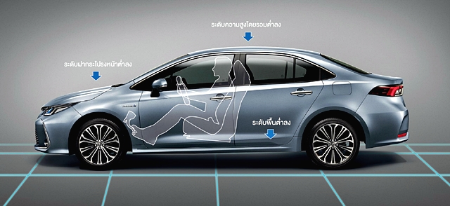 2. ด้านประสิทธิภาพของการขับขี่ - สถาปัตยกรรมยานยนต์ใหม่ TNGA ที่ช่วยทำให้จุดศูนย์ถ่วงของตัวรถโดยรวมลดลง เพิ่มประสิทธิภาพการทรงตัวทั้งการขับขี่ทางตรงและในขณะเข้าโค้ง ช่วงล่างด้านหน้า MacPherson Strut และช่วงล่างด้านหลังอิสระแบบปีกนกคู่ Double Wishbone เพิ่มความนุ่มนวลในขณะโดยสารและเพิ่มประสิทธิภาพการทรงตัวได้อย่างดีเยี่ยม รวมถึงการเพิ่มวัสดุดูดซับเสียงและ การสั่นสะเทือนในตำแหน่งต่างๆ สร้างความผ่อนคลายให้กับผู้โดยสารตลอดการเดินทาง