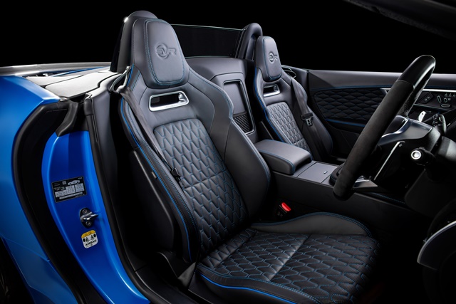 - เบาะนั่ง SVR ไม่ซ้ำใครด้วยลวดลาย Lozenge Quilt ฝาครอบเครื่องมือและคอนโซลกลางที่หุ้มด้วยใยผ้ากันน้ำ พวงมาลัย SVR คันโยกชุบอะลูมิเนียม