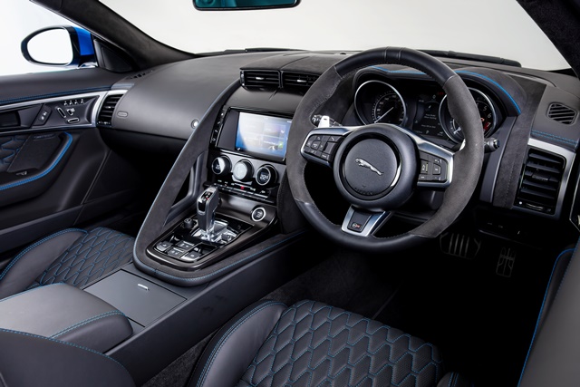 - น้ำหนักรถยนต์ทั้งคันลดลง 25 กก. เมื่อเทียบกับ F-TYPE R AWD และสูงสุดถึง 50 กก. พร้อมตัวเลือกต่างๆ ซึ่งรวมถึงระบบเบรก CCM แผงหลังคาคาร์บอนไฟเบอร์ และชุดคาร์บอนไฟเบอร์