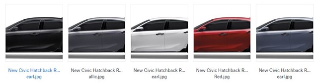 ฮอนด้า ซีวิค แฮทช์แบ็ก ใหม่ รุ่น HATCHBACK TURBO RS ราคา 1,229,000 บาท มีให้เลือกทั้งหมด 5 สี ได้แก่ สีใหม่ คือ สีเทาโซนิค (มุก) สีแดงแรลลี่ สีขาวแพลทินัม (มุก) สีเทาโมเดิร์นสตีล (เมทัลลิก) และ สีดำคริสตัล (มุก)
