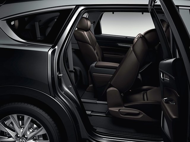 การออกแบบของ All-New Mazda CX-8 ยังคงความประณีตพิถีพิถัน ภายใต้ปรัชญา KODO design : Soul of Motion ที่เน้นความเรียบง่ายแต่งดงามจากคอนเซ็ปต์ Less is More เพื่อลดทอนสิ่งที่ไม่จำเป็นออกไปเหลือแต่ความสง่างาม เริ่มตั้งแต่ดีไซน์จากภายนอกสู่ภายในห้องโดยสาร เลือกใช้เฉพาะวัสดุตกแต่งที่มีคุณภาพสูงเท่านั้น มุ่งเน้นการออกแบบเพื่อรองรับการใช้งานได้หลากหลายตามไลฟ์สไตล์ของผู้ขับขี่ โดยให้ความสำคัญกับพื้นที่ภายในห้องโดยสาร ความสะดวกสบาย สามารถรองรับการใช้งานจริงของผู้โดยสารในทุกตำแหน่งที่นั่ง โดยมีรูปแบบของห้องโดยสารที่นั่งให้เลือก ทั้งแบบ 3 แถว 6 ที่นั่ง และแบบ 3 แถว 7 ที่นั่ง สำหรับห้องโดยสารแบบ 3 แถว 6 ที่นั่ง มาพร้อมเบาะที่นั่งแถวสองแบบ Exclusive Captain Seat 2 ที่นั่ง แยกซ้าย-ขวา อัดแน่นไปด้วยอุปกรณ์อำนวยความสะดวกกับคอนโซลกลางที่เป็นทั้งกล่องเก็บของ ที่วางแก้วน้ำ ช่อง USB สำหรับชาร์จไฟ 2 ช่อง และม่านบังแดดที่ประตูคู่หลัง มอบความสบายระดับเอ็กซ์คลูซีฟ