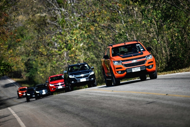 การทดสอบทริปนี้ มีรถกระบะเชฟโรเลตให้เลือกทั้งหมด 4 รุ่น ได้แก่ โคโลราโด ไฮคันทรี, โคโลราโด ไฮคันทรี สตอร์ม, โคโลราโด มิดไนท์ อีดิชั่น และ โคโลราโด โฟร์ท ออฟ จูลาย อิดิชั่น ซึ่งล้วนใช้ขุมพลังเดียวกันแตกต่างกันแค่การตกแต่งหลากหลายสไตล์ ผู้เขียนได้นั่งในรุ่นไฮคันทรี สีดำหมายเลข 4 พร้อมกับเพื่อนสื่อมวลชนอีกท่าน