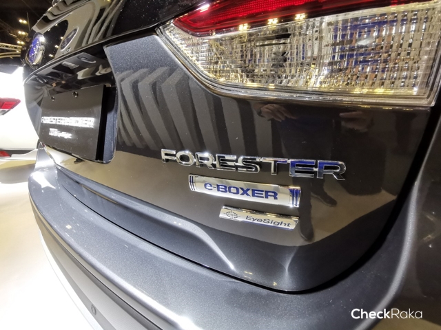 สำหรับรุ่นนี้ ก็เป็นอีก 1 ไฮไลท์เพราะคลุมผ้าไว้ก่อนเปิดตัวกับ Subaru Forester ที่เป็นเครื่องยนต์ e-BOXER และเป็นรถนำเข้าจากญี่ปุ่นซึ่งหลักการทำงานจะเป็นการใช้มอเตอร์ไฟฟ้าให้ทำงานควบคู่กับเครื่องยนต์ โดยขุมพลังบล็อกนี้เป็นรหัส FB20 ใช้เครื่องยนต์บ็อกเซอร์ 4 สูบแบบ Di 2,000 ซีซี 145 แรงม้า แรงบิดสูงสุด 19.1 กก.ม. และมีมอเตอร์ไฟฟ้าขนาด 13.6 แรงม้า และแรงบิดสูงสุด 6.6 กก.-ม.จะเป็นตัวช่วยในการขับเคลื่อน เพื่อลดมลพิษ และความประหยัด โดยตัว e-Boxer จะทำงานร่วมกับเกียร์ CVT และระบบขับเคลื่อน 4 ล้อ ตลอดเวลา