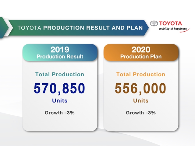 โตโยต้า แถลงยอดขายรถยนต์ปี 2562 คาดตลาดรวมปี 2563 อยู่ที่ 940,000 คัน พร้อมตั้งเป้า 310,000 คัน