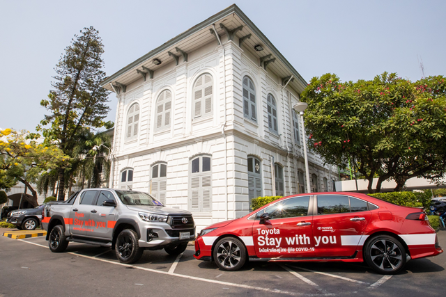 โดยการสนับสนุนในครั้งนี้ โตโยต้า ได้สนับสนุนรถยนต์โตโยต้า โคโรลล่า อัลติส จำนวน 100 คัน และ รถกระบะไฮลักซ์ รีโว่ จำนวน 150 คัน เพื่อใช้ประโยชน์ในภารกิจของเจ้าหน้าที่ที่เกี่ยวข้องระหว่างการแก้ไขสถานการณ์การแพร่ระบาดของเชื้อไวรัส COVID-19 เช่น การติดต่อประสานงาน, การค้นหาติดตามผู้ติดเชื้อ, การเฝ้าระวังสถานการณ์ รวมถึงการจัดตั้งจุดคัดกรองและจุดสกัดต่างๆ ตลอดจนสนับสนุนการปฏิบัติงานของเจ้าหน้าที่ในหน่วยงานภายใต้กระทรวงมหาดไทย และบริจาคข้าวสารจากโรงสีข้าวรัชมงคล จำนวน 77 ตัน โดยจัดส่งผ่านผู้แทนจำหน่ายโตโยต้า จังหวัดละ 1 ตัน เพื่อกระจายความช่วยเหลือไปยังเจ้าหน้าที่ที่เกี่ยวข้องกับการแก้ไขสถานการณ์ COVID-19 ในพื้นที่ทุกจังหวัดทั่วประเทศ