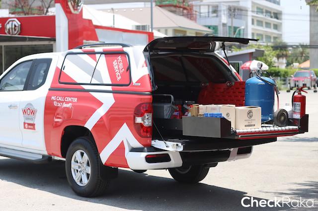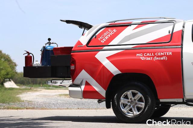 สำหรับรถที่นำมาใช้เป็น MG Mobile Service เป็น NEW MG EXTENDER กระบะพันธุ์ยักษ์ รุ่น Giant Cab 2.0 โดยจะให้บริการเช็คระยะและตรวจสภาพรถนอกสถานที่ หรือ Mobile Service จะให้บริการดูแลรักษารถยนต์ ตามระยะพื้นฐาน เช่น การเปลี่ยนถ่ายน้ำมันเครื่องและตรวจสภาพการทำงานของชิ้นส่วนอะไหล่ต่างๆ ตามระยะ 10,000 กิโลเมตร