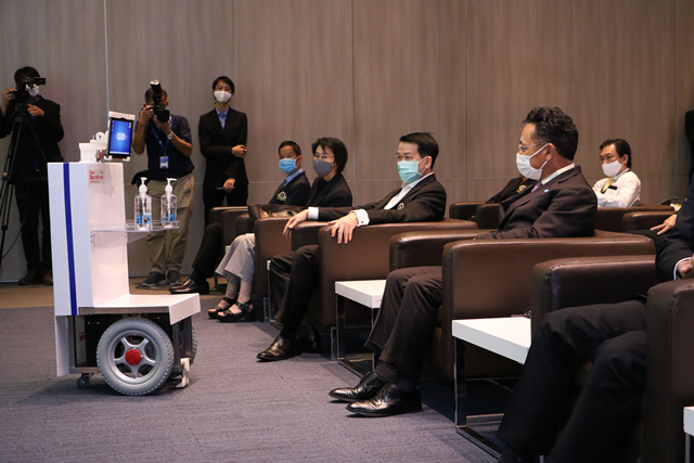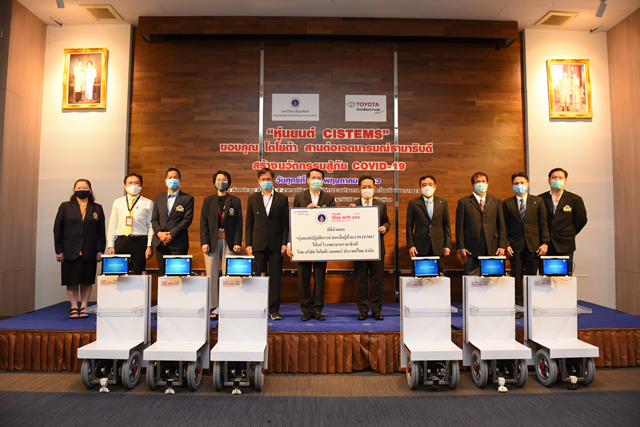 นายมิจิโนบุ ซึงาตะ กรรมการผู้จัดการใหญ่ บริษัท โตโยต้า มอเตอร์ ประเทศไทย จำกัด เป็นตัวแทนองค์กรในการส่งมอบหุ่นยนต์ปฏิบัติการช่วยเหลือผู้ป่วย จำนวน 8 ตัว ที่พัฒนาการขึ้นเพื่อใช้ปฏิบัติภารกิจทางการแพทย์ ในการดูแลและติดตามอาการของผู้ป่วยติดเชื้อ แก่โรงพยาบาลรามาธิบดี และ โรงพยาบาล อีก 4 แห่งในภาคใต้ โดยมี ศาสตราจารย์ นายแพทย์ปิยะมิตร ศรีธรา คณบดี คณะแพทยศาสตร์ โรงพยาบาลรามาธิบดี มหาวิทยาลัยมหิดล เป็นตัวแทนรับมอบ ในวันที่ 15 พฤษภาคม 2563 ณ โรงพยาบาลรามาธิบดี