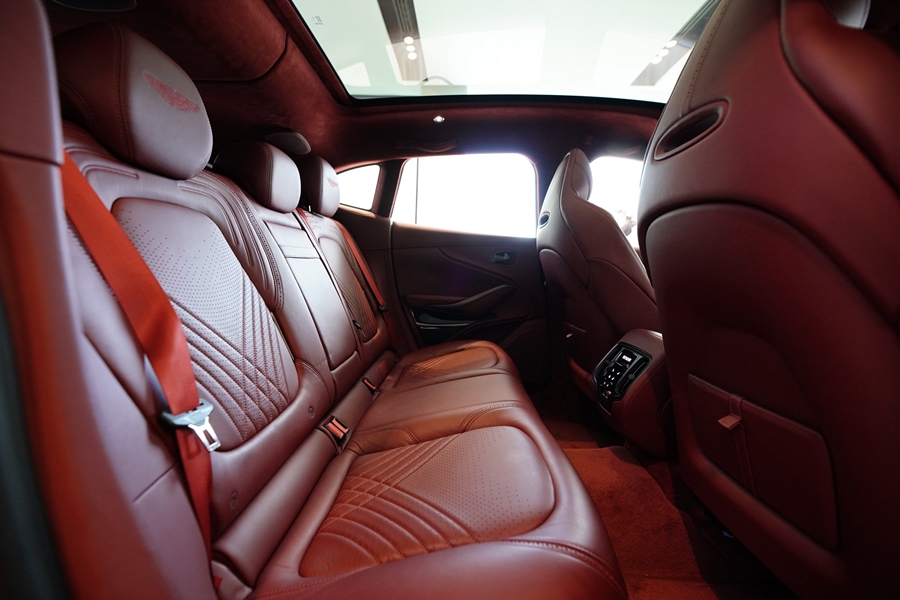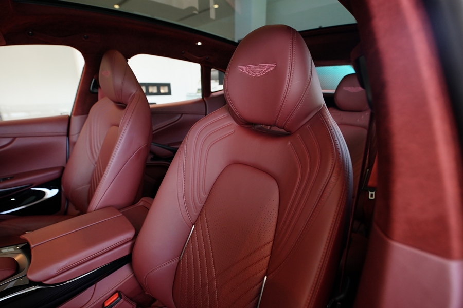 ห้องโดยสารยังคงบุคลิกที่เป็นเอกลักษณ์ของ แอสตัน มาร์ติน ด้วยการดีไซน์ที่ประณีตและพิถีพิถัน กว้างขวางหรูหรา เพิ่มแสงสว่างในห้องโดยสาร ด้วยหลังคาพาโนรามิกซันรูฟและประตูไร้กรอบกระจก ตกแต่งด้วยอะลูมิเนียมและหนังแท้ full natural grain "Caithness' ที่มีกลิ่นหอมและผิวเรียบเนียน คอนโซลกลางออกแบบอย่างงดงาม มีลักษณะคล้ายสะพาน เชื่อมต่อไปยังส่วนกลางของแดชบอร์ด เพิ่มความสะดวกสบายผ่านจออเนกประสงค์ขนาด 10.25 นิ้ว รองรับ Apple Car Play พร้อมกล้องมองภาพ 360 องศา และไฟเพิ่มบรรยากาศในห้องโดยสาร ที่สามารถปรับได้ถึง 64 เฉดสี