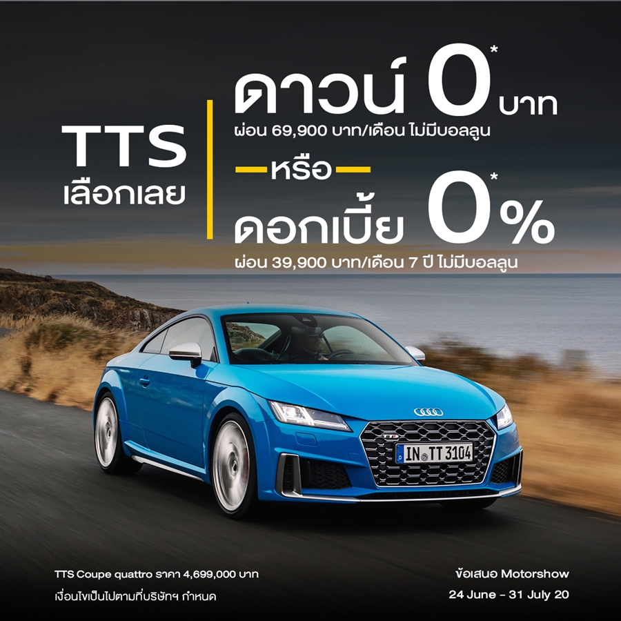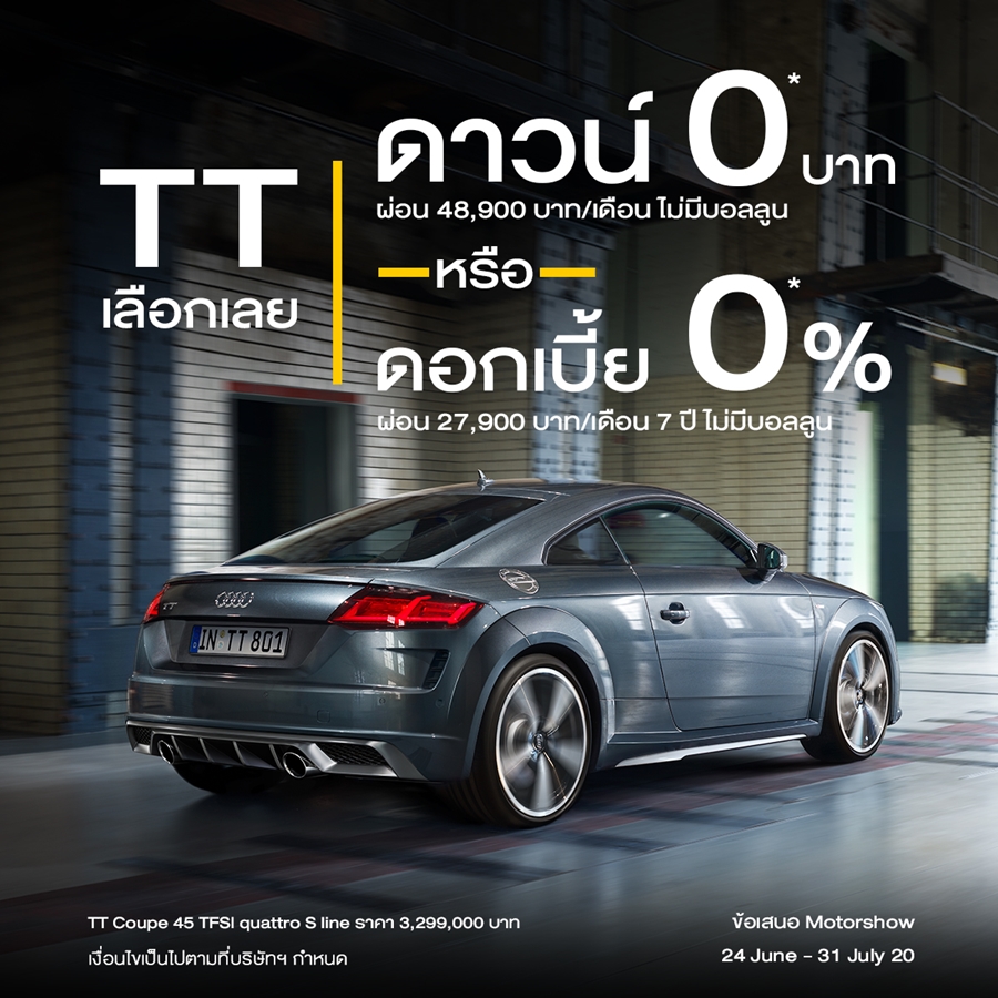 - Audi TT Roadster ผ่อนต่อเดือนเพียง 29,990 บาท นาน 7 ปี *** ไม่มีบอลลูน