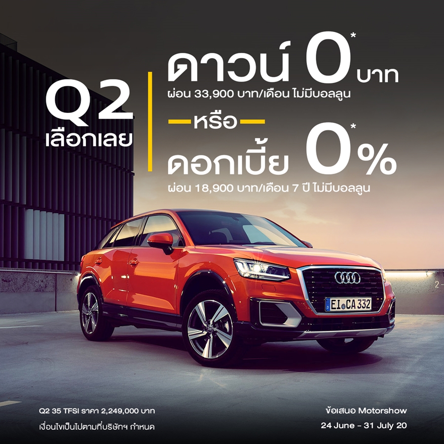 เลือกระหว่าง ดาวน์ 0 บาท หรือ โปรแกรมผ่อนสบายๆ ดอกเบี้ย 0% นาน 7 ปี ***ไม่มีบอลลูน อาทิเช่น A1, A4 Avant, A8L, Q2, Q5, Q8, TT Coupe, TT Roadster และ TTS