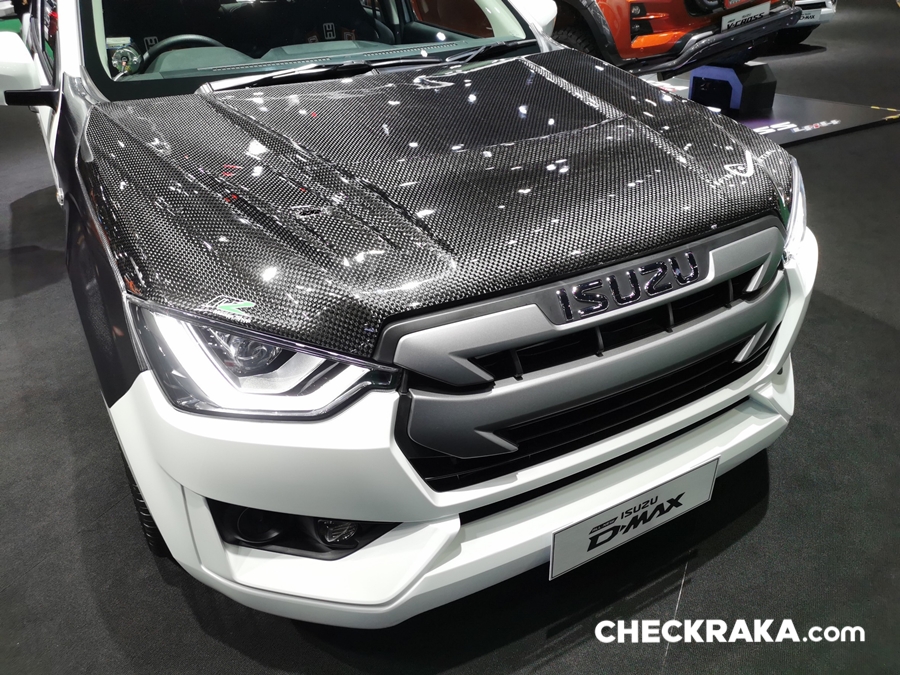รถยนต์อีซูซุคันนี้บอดี้พาร์ทภายนอกทั้งคันให้มีความสปอร์ต โฉบเฉี่ยว พร้อมติดตั้งฝากระโปรงหน้าฝาปิดกระบะท้าย กระจกมองข้างทรงสปอร์ต สปอยเลอร์หลังคาด้วย Akana Carbon Composite เท่อย่างลงตัวด้วยล้ออัลลอย PP Super Wheels ล้อหน้า 9.5 นิ้ว ล้อหลัง 10.5 นิ้ว พร้อมยาง Toyo Tire T-1S ยางหน้า 245/45R18 ยางหลัง 275/40R18 ดิสก์เบรก 4 ล้อจาก Run Stop แบบ 6 พ็อต ขนาด 355 มม. ชุดโหลดช่วงล่างจาก Hot bits เสริมความแรงด้วยกล่อง ECU Shop รุ่น Ultra Boost ให้กำลังสูงสุด 350 แรงม้า แรงบิดสูงสุด 600 นิวตัน-เมตร ตอกย้ำความเป็นผู้นำด้านสมรรถนะและความแรง ถ่ายทอดกำลังเครื่องยนต์ได้เต็มประสิทธิภาพด้วยชุดคลัชท์ BRC และท่อไอเสีย Nitto ตลอดจนอุปกรณ์เพื่อความปลอดภัยครบครัน เช่น Roll Cage เบาะรถแข่ง Sparco เข็มขัดนิรภัย HC Group พวงมาลัย Sparco เป็นต้น