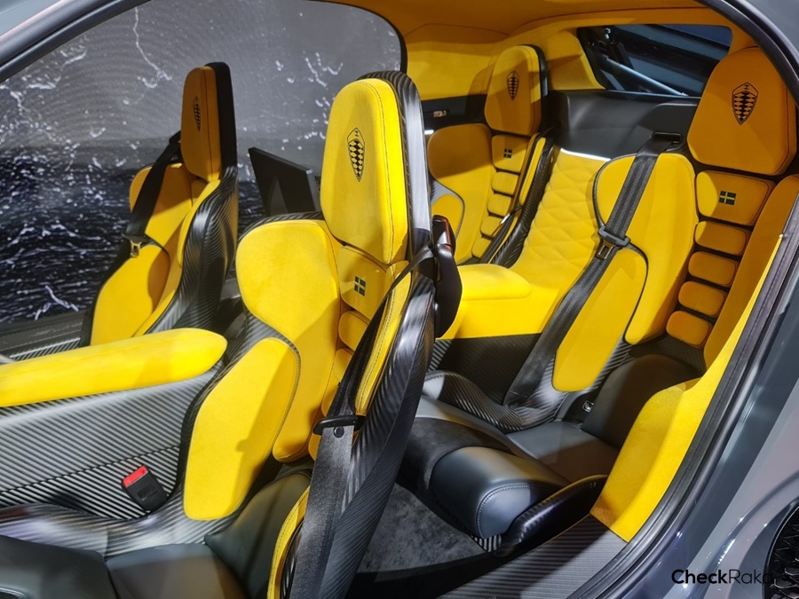 สำหรับ Koenigsegg Gemera (เคอนิกเส็กก์ เกเมร่า) 4 ที่นั่งคันแรกของโลก (The World's First Mega-GT and Koenigsegg's First Four Four) ถูกออกแบบด้วยที่นั่งที่สามารถรองรับสรีระของผู้ใหญ่ได้ถึง 4 ที่นั่ง และยังสามารถเก็บกระเป๋าสัมภาระได้ถึง 4 ใบ ทั้งยังมาพร้อมที่วางแก้วถึง 8 จุด จอแสดงผลข้อมูลต่างๆ ทั้งด้านหน้าและด้านหลัง จุดชาร์จโทรศัพท์แบบไร้สาย ระบบ Apple CarPlay ลำโพง 11 จุด