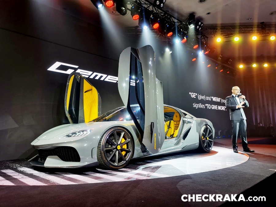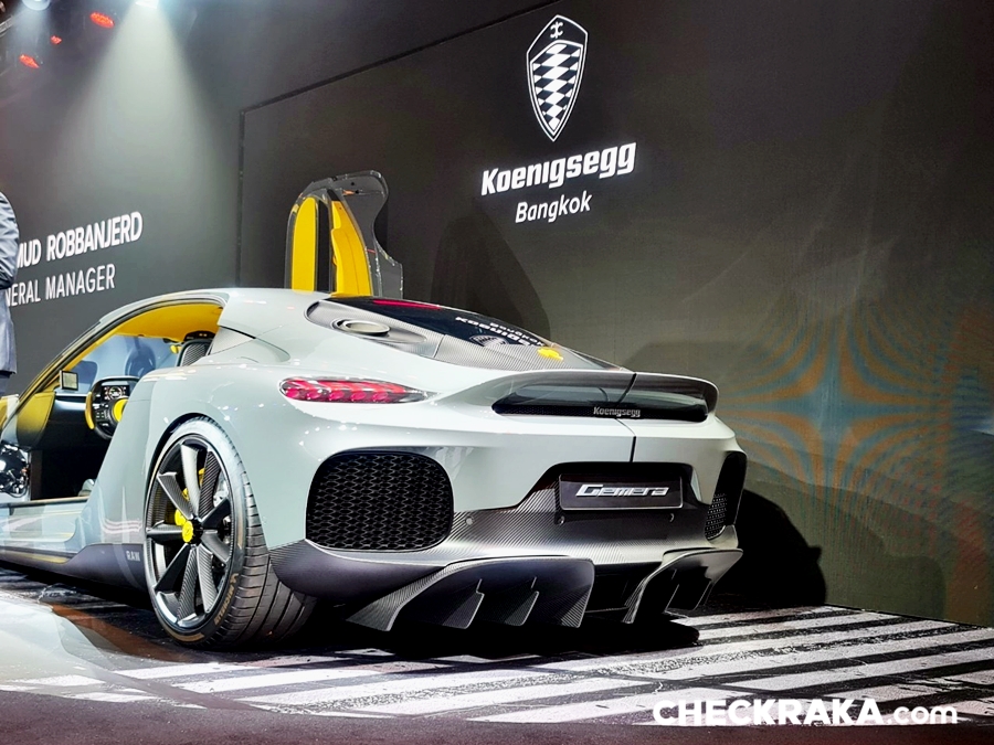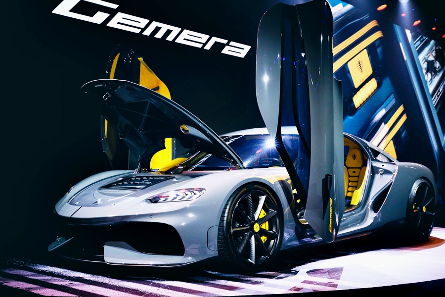 Koenigsegg Gemera (เคอนิกเส็กก์ เกเมร่า) Mega-GT ไฮเปอร์คาร์ 4 ที่นั่งคันแรกของโลก (The World's First Mega-GT and Koenigsegg's First Four Four) ผลิตเพียง 300 คันทั่วโลก ไฮเปอร์คาร์ที่สามารถใช้งานในชีวิตประจำวันได้อย่างสะดวกสบาย ถังตัวน้ำหนักเบาหวิวโครงสร้างตัวถังแบบ Carbon Fiber Monocoque ประตูใหม่ที่เรียกว่า "Koenigsegg Automated Twisted Synchrohelix Actuation Doors (KATSAD)" ซึ่งสามารถเปิดได้กว้างพอที่ผู้โดยสารด้านหน้าและด้านหลังสามารถเข้ารถไปได้พร้อมกันเลยในเวลาเดียวกันทั้งยังคงรูปลักษณ์แบบรถสปอร์ต 2 ประตู