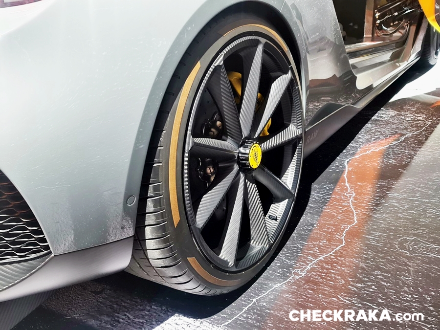 ช่วงล่างแบบ Double wishbones โช้คแก๊สปรับระดับได้ ระบบเบรกหน้า Ventilated ceramic จานเบรกขนาดเส้นผ่านศูนย์กลาง 410 มม. หนา 38 มม. คาร์ลิเปอร์ 6 ลูกสูบ เบรกหลัง Ventilated ceramic เส้นผ่านศูนย์กลาง 395 มม. หนา 32 มม. คาร์ลิเปอร์ 4 ลูกสูบ พร้อม ABS ล้อหน้าขนาด 21 นิ้ว กว้าง 10.5 นิ้ว และหลัง 22 นิ้ว กว้าง 11.5 นิ้ว รัดด้วยยางติดรถ Michelin Pilot Sport 4S และสามารถอัพสเปคยางเพิ่มได้เป็น Michelin Cup R3 หน้าขนาด 295/30 ZR21 หลัง 315/30 ZR22