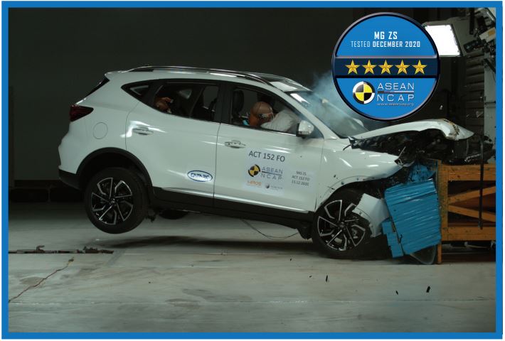 ในการทดสอบการชน ASEAN NCAP ในครั้งนี้ เอ็มจี ได้นำรถ NEW MG ZS รุ่น C+ ซึ่งเป็นรุ่นเริ่มต้น เข้ารับการทดสอบและได้รับคะแนน 5 ดาว ทั้งในด้านการปกป้องผู้โดยสารที่เป็นผู้ใหญ่ (Adult Occupant Protection : AOP) การปกป้องผู้โดยสารที่เป็นเด็ก (Child Occupant Protection : COP) รวมทั้งระบบช่วยเหลือด้านความปลอดภัย (Safety Assist)