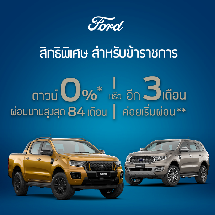 นอกจากนี้ ฟอร์ดยังมอบข้อเสนอสุดพิเศษสำหรับ "ข้าราชการ" เมื่อซื้อรถฟอร์ด เรนเจอร์ ใหม่ หรือ ฟอร์ด เอเวอเรสต์ ใหม่ ทุกรุ่น สามารถเลือกรับสิทธิพิเศษ ดังนี้