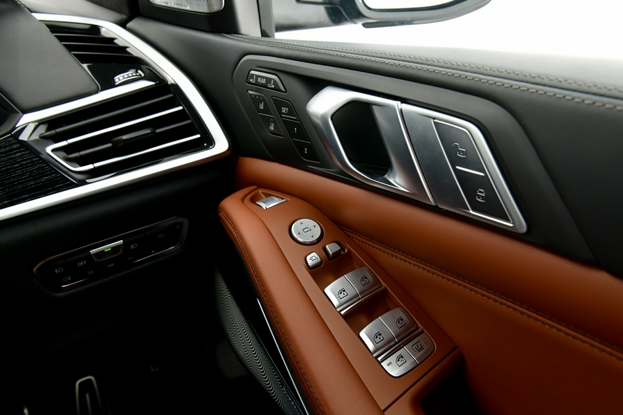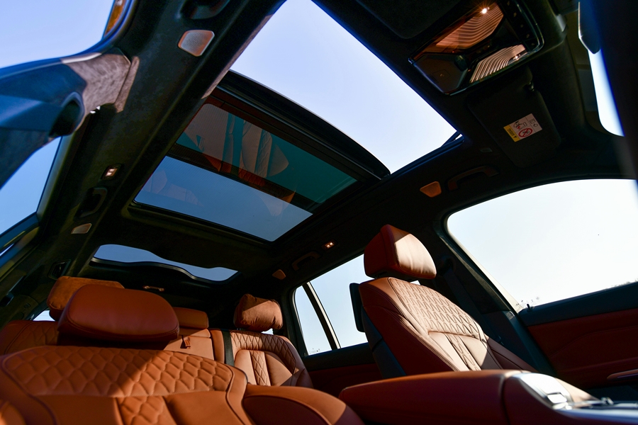 ภายในห้องโดยสารมาพร้อมเบาะนั่งแบบสามแถว รวม 7 ที่นั่ง ทุกที่นั่งสามารถปรับได้ด้วยระบบไฟฟ้า มอบความสะดวกสบายให้กับผู้ขับขี่และผู้โดยสาร เบาะที่นั่งบุด้วยหนังแท้ Merino เนื้อละเอียดจาก BMW Individual หรูหราขึ้นไปอีกขั้นด้วยการตกแต่งห้องโดยสารด้วยลายไม้สีดำเงา 'Fineline' แบบ metal effect มอบความภูมิฐานสง่างาม ตกแต่งภายในด้วยผลึกแก้ว ?CraftedClarity? พร้อมชุดไฟ Ambient light ชุดไฟสร้างบรรยากาศภายในห้องโดยสาร เพดานแบบ Panorama glass roof Sky Lounge ที่เพิ่มความโปร่งอย่างโอ่อ่าเหนือระดับ ระบบปรับอากาศอัตโนมัติแบบ 5 โซน และระบบความบันเทิงพร้อมจอภาพสำหรับผู้โดยสารตอนหลังรุ่น Professional อีกสองจอ ส่วนห้องเก็บสัมภาระท้ายรถมีปริมาตรความจุ 300 ลิตร และเพิ่มได้สูงสุดถึง 2,120 ลิตร เมื่อพับเบาะแถว 3 และแถว 2 ตามลำดับ ออกแบบมาเพื่อตอบทุกโจทย์การขับขี่