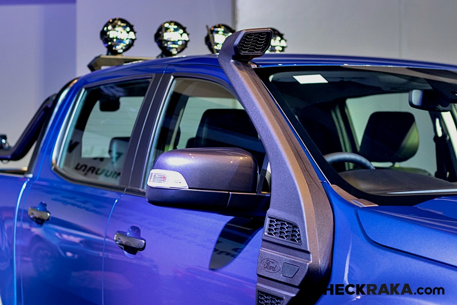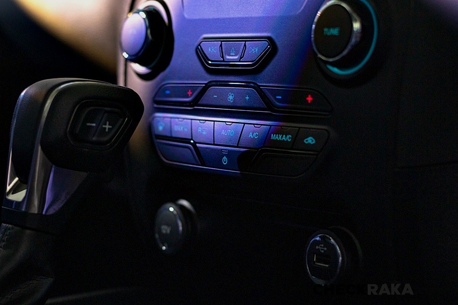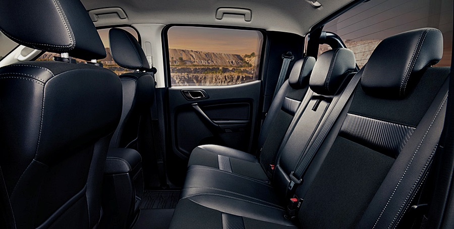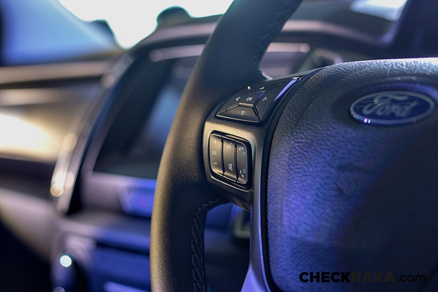 แป้นเหยียบคันเร่งสไตล์สปอร์ตแบบเดียวกับฟอร์ด เรนเจอร์ แร็พเตอร์ ไปจนถึงพวงมาลัยหุ้มด้วยหนังสีดำ สีเดียวกับลวดลายตกแต่งแผงคอนโซลและขอบประตูยกระดับความโดดเด่นและความรู้สึกที่โฉบเฉี่ยวดุดัน
