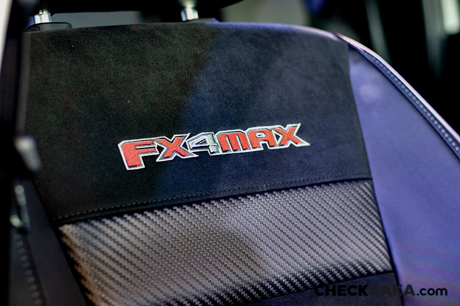 ภายในห้องโดยสารของฟอร์ดเรนเจอร์ FX4 Max ใหม่มาพร้อมกับการออกแบบอันโดดเด่นจากบันไดข้างโลหะสีดำแบบออฟโรดพร้อมผิวกันลื่น จนถึงชุดผ้ายางปูพื้นภายในห้องโดยสารที่ออกแบบมาเพื่อรองรับการใช้งานแบบออฟโรดโดยเฉพาะเบาะนั่งพิเศษเฉพาะใช้วัสดุหนังแท้ Alcantara และหนังสังเคราะห์ใหม่ที่แตกต่างจากรุ่นอื่นๆ รวมถึงการปักสัญลักษณ์ FX4 Max ที่เป็นเอกลักษณ์บนเบาะคู่หน้าและปรับด้วยมือ