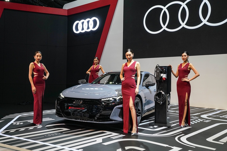 นอกจากไฮไลท์ที่มีการเปิดตัวรถรุ่นใหม่ในงานแล้ว ที่บูธ อาวดี้ ประเทศไทย ภายในงาน Bangkok Motor Show 2021 ระหว่างวันที่ 24 มีนาคม? 4 เมษายน 2564 ที่ชาเลนเจอร์ฮอล์ เมืองทองธานี ยังมีไฮไลท์สุดยอดที่สร้างความฮือฮาให้กับทั่วโลก นั่นคือ The New Audi e-tron GT ยนตรกรรมสปอร์ตคูเป้ 4 ประตู ขับเคลื่อนด้วยพลังงานไฟฟ้า 100% รุ่นล่าสุด ซึ่งคันที่นำมาจัดแสดง เป็นเพียง 1 ใน 8 คัน ที่ประเทศไทยได้รับสิทธิ์นำมาเปิดตัวเป็นครั้งแรกในเอเชีย โดยเพิ่งเปิดตัวกับสื่อมวลชนไทยและเปิดตัวกับสาธารณชน ในงานมอเตอร์โชว์เป็นครั้งแรก และเปิดรับจองในงานนี้ด้วย มีให้เลือก 3 รุ่นย่อย 9 สี คือ e-tron GT quattro ราคา 6,390,000 บาท, รุ่น e-tron GT quattro Performance ราคา 6,790,000 บาท และตัวท็อปที่สุดคือ RS e-tron GT quattro ราคาสุดเร้าใจเพียง 9,490,000 บาท รวมถึงมีรถไฟฟ้า e-tron SUV อีก 2 รุ่น ที่เปิดตัวก่อนหน้านี้ คือ Audi e-tron Sportback 55 quattro S line และ Audi e-tron 55 quattro มาจัดแสดงด้วย