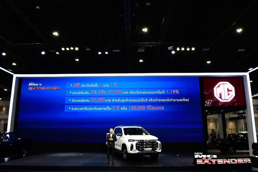 บริษัท เอสเอไอซี มอเตอร์ - ซีพี จำกัด และ บริษัท เอ็มจี เซลส์ (ประเทศไทย) จำกัด ผู้ผลิตและผู้จำหน่ายรถยนต์เอ็มจีในประเทศไทย แถลงข่าวเปิดตัวโฉมล่าสุดของ NEW MG EXTENDER กระบะพันธุ์ยักษ์ให้มากกว่าความแกร่ง ที่มาพร้อมรูปลักษณ์ใหม่ที่ดุดัน ทรงพลัง ตอกย้ำความเป็นสมาร์ทปิกอัพด้วยเทคโนโลยีการเชื่อมต่ออัจฉริยะ i-SMART และระบบความปลอดภัยมาตรฐานยุโรปที่ครบครันถึง 9 ระบบ มั่นใจยิ่งขึ้นด้วยการรับประกันคุณภาพนาน 5 ปี หรือ 150,000 กิโลเมตร พร้อมมอบความคุ้มค่าที่เหนือกว่า เตรียมสัมผัสและเป็นเจ้าของ NEW MG EXTENDER โฉมล่าสุดได้ในงาน Bangkok International Motor Show ครั้งที่ 42 ตั้งแต่วันที่ 24 มีนาคม - 4 เมษายน นี้