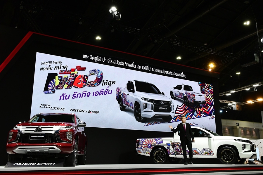 โดยบนเวทีได้จัดแสดง มิตซูบิชิ ไทรทัน สเปเชียล เอดิชั่น ที่ออกแบบโดยคุณรักกิจ ควรหาเวช ศิลปินแนวสตรีทอาร์ตชื่อดังของประเทศไทย ผู้ที่มีความมุ่งมั่นในการสร้างสรรค์ผลงานใหม่ๆ อย่างต่อเนื่อง เช่นเดียวกับ มิตซูบิชิ มอเตอร์ส ที่มุ่งมั่นในการก้าวไปข้างหน้าและไม่เคยหยุดนิ่งในการคิดค้นพัฒนายานยนต์และบริการที่ดีที่สุดให้แก่ลูกค้า และ มิตซูบิชิ ปาเจโร สปอร์ต แพชชั่น เรด เอดิชั่น รถอเนกประสงค์ระดับพรีเมียม