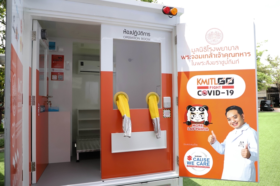 นายวัลลภ ตรีฤกษ์งาม กรรมการบริหารด้านการขายและการตลาด บริษัท ซูซูกิ มอเตอร์ (ประเทศไทย) จำกัด กล่าวว่า "จากสถานการณ์การแพร่ระบาดของเชื้อไวรัสโควิด-19 ที่มีแนวโน้มรุนแรงเพิ่มขึ้นในหลายพื้นที่ทั่วประเทศ โดยมีตัวเลขผู้ติดเชื้อในแต่ละวันเพิ่มมากขึ้นเรื่อยๆ จนส่งผลให้เกิดความแออัดและรอคิวนานของประชาชนที่กำลังเข้าไปใช้บริการในโรงพยาบาลต่างๆ เป็นจำนวนมาก โดย รถเก็บตัวอย่างชีวนิรภัย (Biosafety Mobile Unit) สำหรับการตรวจคัดกรองหาเชื้อโควิด-19 ในเชิงรุกแบบเคลื่อนที่ ได้เข้ามามีบทบาทสำคัญในช่วงวิกฤติดังกล่าวนี้ โดย ตู้ชีวนิรภัย (biosafety unit) ถูกออกแบบมาสำหรับติดตั้งอยู่บนกระบะรถ SUZUKI CARRY เพื่อช่วยสนับสนุนการทำงานของบุคลากรทางการแพทย์ ล่าสุดซูซูกิได้ร่วมพิธีส่งมอบรถ SUZUKI CARRY ในโครงการผลิตรถเก็บตัวอย่างชีวนิรภัย ที่สามารถ SWAB ได้พร้อมกัน 3 ทาง จึงเก็บตัวอย่างได้ถึง 3 เคส ในครั้งเดียว สามารถตรวจคัดกรองโควิด-19 ได้กว่าวันละ 3,000 ราย โดย สถาบันเทคโนโลยีพระจอมเกล้าเจ้าคุณทหารลาดกระบัง ร่วมกับ มูลนิธิโรงพยาบาลพระจอมเกล้าเจ้าคุณทหาร และ ทนพ.ภาคภูมิ เดชหัสดิน (หมอแล็บแพนด้า) ณ คณะสถาปัตยกรรม ศิลปะและการออกแบบ สถาบันเทคโนโลยีพระจอมเกล้าเจ้าคุณทหารลาดกระบัง เมื่อวันที่ 24 พฤษภาคม 2564 ที่ผ่านมา"