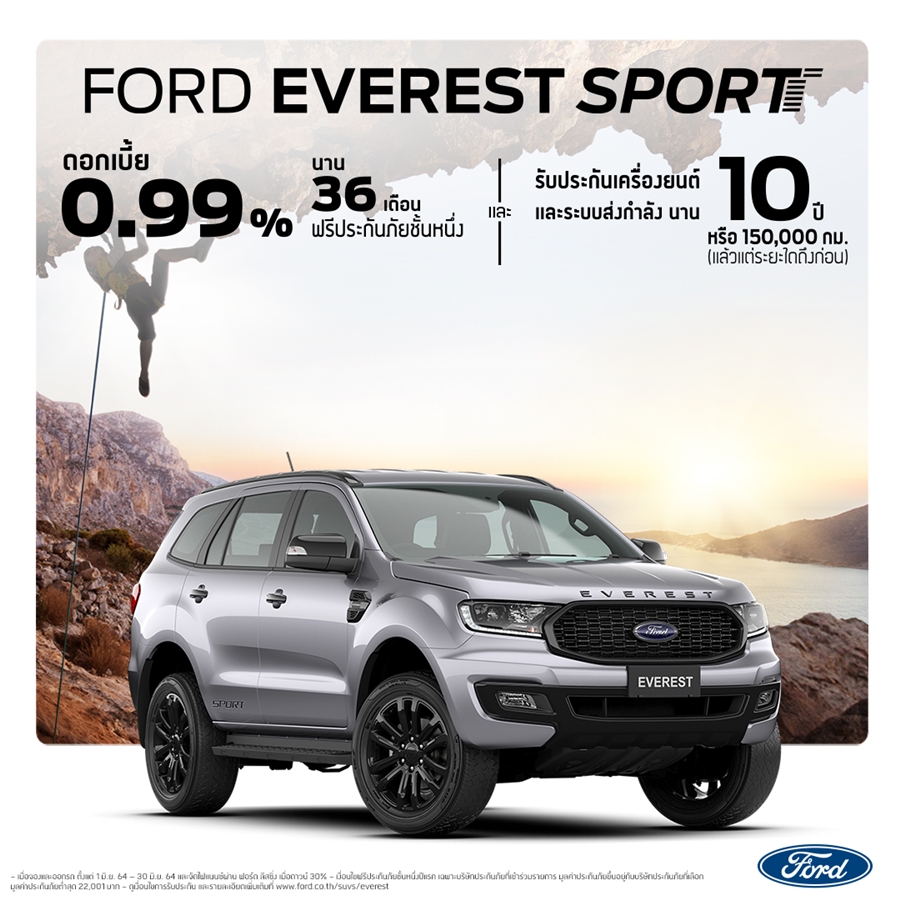 ฟอร์ด เอเวอร์เรสต์ รุ่น Titanium+ 4x4, รุ่นสปอร์ต และรุ่นเทรนด์: ดอกเบี้ย 0.99% ผ่อนนาน 36 เดือน
