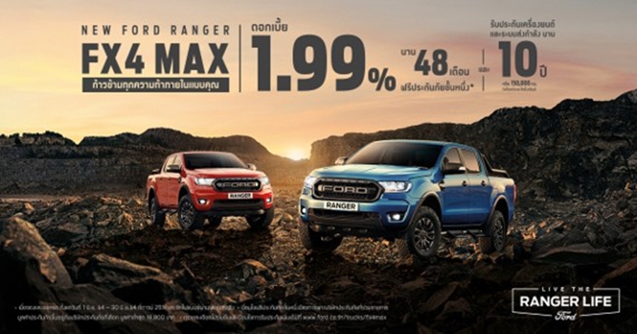 ฟอร์ด เรนเจอร์ FX4 Max: ดอกเบี้ย 1.99% ผ่อนนาน 48 เดือน