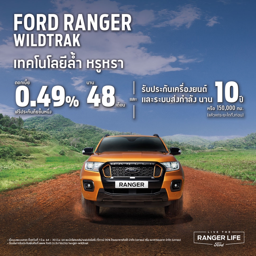 ฟอร์ด ประเทศไทย มอบข้อเสนอสุดพิเศษ รวมถึงสิทธิประโยชน์อื่นๆ สำหรับฟอร์ด เรนเจอร์ จากผู้จำหน่ายฟอร์ดทั่วประเทศ ตลอดช่วงเดือนมิถุนายน 2564 ดังนี้