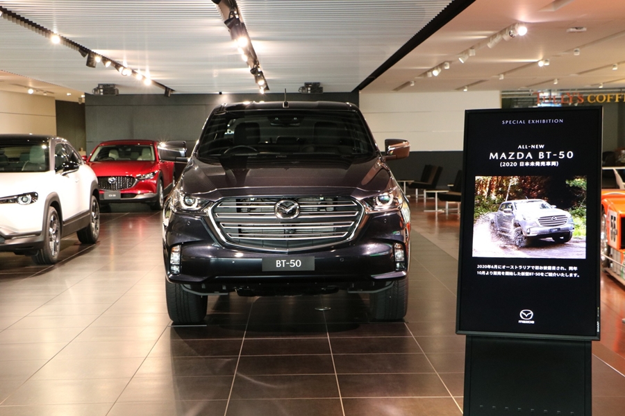 รถปิกอัพ ALL-NEW MAZDA BT-50 เจเนอเรชั่นใหม่ล่าสุดจากตระกูล B-Series ถือกำเนิดขึ้นเป็นครั้งแรกในปี 1961 โดยใช้ชื่อว่า B1500 ซึ่งได้ถูกพัฒนาปรับโฉมมาแล้วถึง 9 เจนฯ จนถึงปัจจุบัน และได้วางจำหน่ายในหลายภูมิภาคหลักทั่วโลก ทั้งในกลุ่มประเทศในแถบโอเชียเนีย อาเซียน อเมริกากลางและอเมริกาใต้ ตะวันออกกลาง และแอฟริกา รวมถึงในประเทศไทย อย่างไรก็ตาม ปิกอัพรุ่นนี้ไม่ได้วางจำหน่ายในประเทศญี่ปุ่น ดังนั้น การจัดแสดงครั้งนี้ นับเป็นโอกาสอันดีที่ลูกค้าชาวญี่ปุ่น รวมถึงนักท่องเที่ยวที่เดินทางมาจากทุกสารทิศทั่วโลกจะได้มีโอกาสสัมผัสถึงความสง่างามที่แฝงไว้ด้วยพลัง ซึ่งมีชาวญี่ปุ่นให้ความสนใจและเข้าชมอย่างต่อเนื่องในช่วงเดือนมิถุนายนที่ผ่านมา