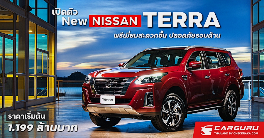 นิสสัน เทอร์ร่า ใหม่ (Nissan Terra) รถอเนกประสงค์สำหรับครอบครัวที่พร้อมพาทุกคนไปทุกเส้นทาง ภายนอกดีไซน์ใหม่สะท้อนความละเอียดประณีตและโมเดิร์น ภายในดีไซน์ภายในใหม่เรียบหรูดูพรีเมียมกว่าเดิม สมรรถนะการขับขี่โดดเด่น ทนทาน ให้ความสะดวกสบายด้วยระบบเอ็นเตอร์เทนเมนท์คุณภาพสูงพร้อมเทคโนโลยีความปลอดภัย 360 องศา ดูแลตลอดการขับขี่ ครบกว่ารถยนต์อเนกประสงค์ในระดับเดียวกัน ราคาเริ่มต้น 1,199,000 บาท