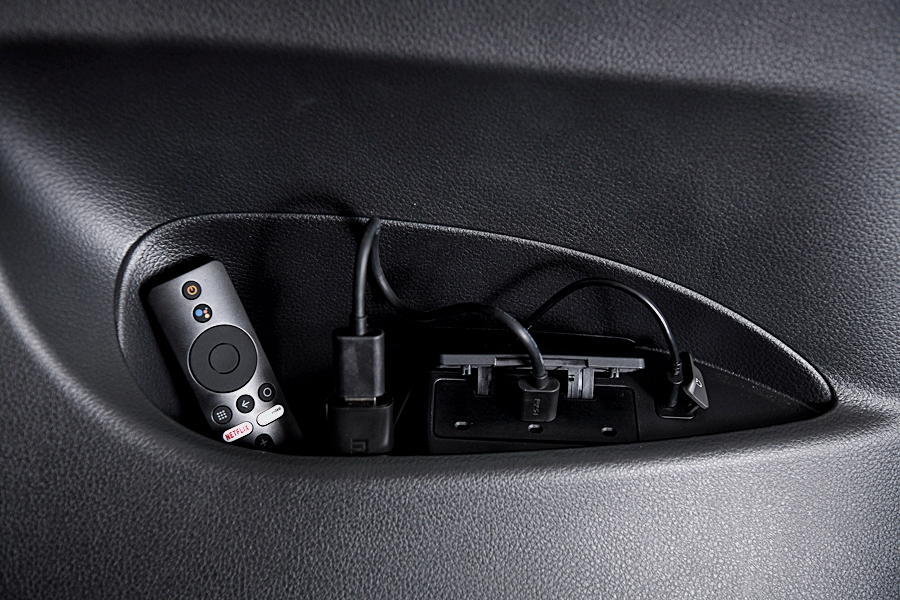หน้าจอมอนิเตอร์ขนาดใหญ่ 11 นิ้ว สำหรับผู้โดยสารตอนหลัง สามารถสตรีมมิ่งช่องโปรด เช่น NetFlix และ YouTube ผ่านช่อง HDMI ได้อย่างง่ายดาย พร้อมช่องชาร์จไฟที่ช่วยให้ความบันเทิงไม่มีสะดุดตลอดการเดินทาง
