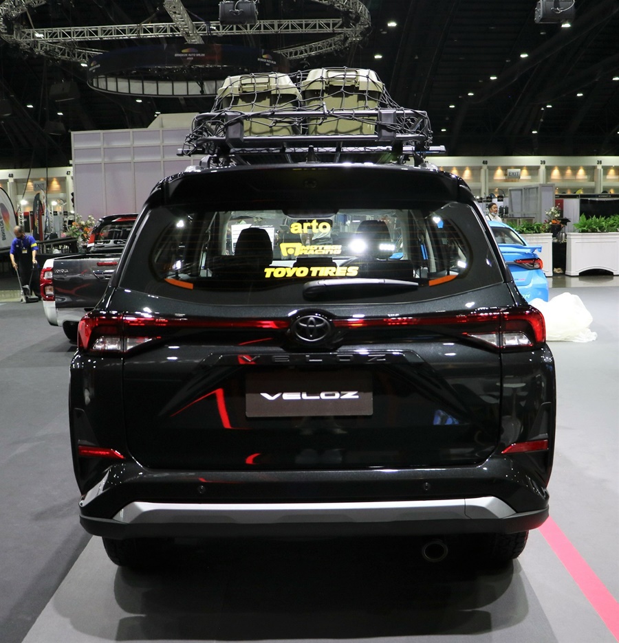VELOZ ชุดแต่ง BLACK FOREST ตกแต่งใหม่เพิ่มความอเนกประสงค์ จัดเต็มด้วยแร็คใส่ของบนหลังคา มาพร้อมกับไฟบาร์สปอร์ตไลน์ เพื่อการใช้งานที่หลากหลาย อีกทั้งคุมโทนตัวรถด้วยสีดำตัดเทาทั้งคัน ที่ให้ความรู้สึกเท่ และดุดัน พร้อมตอบโจทย์สายลุย ไม่ว่าจะเป็นการใช้งานในเมืองหรือออกไปผจญภัยตามที่ต่างๆ โดยชุดแต่งจะประกอบไปด้วย แร็คใส่ของบนหลังคาพร้อมไฟบาร์สปอร์ตไลท์ ปลายท่อไอเสีย ไฟสปอร์ตไลท์ ล้อแม็กซ์ Motegi Racing ขนาด 17x7.5 +40 ยาง Toyo Open Country A/T 3 ขนาด 215/60/R17 โช้คอัพ Profender และคันเร่งไฟฟ้าจาก ECU=SHOP